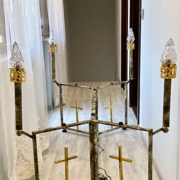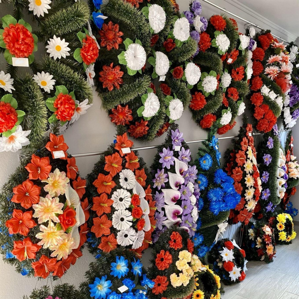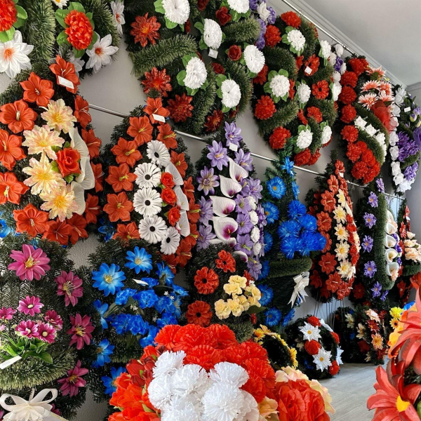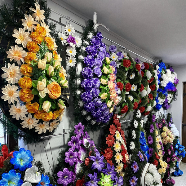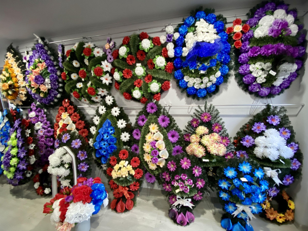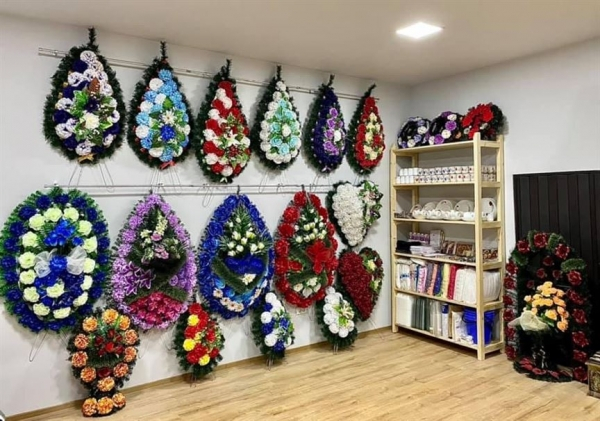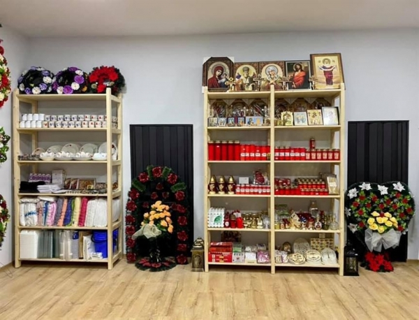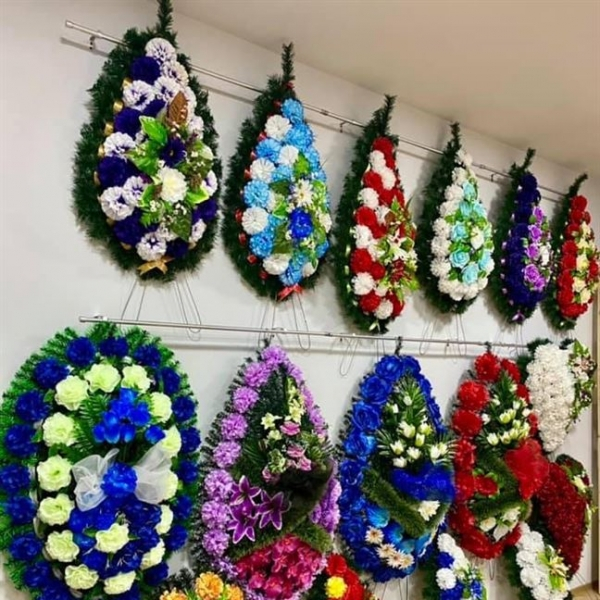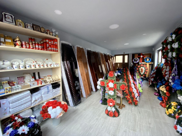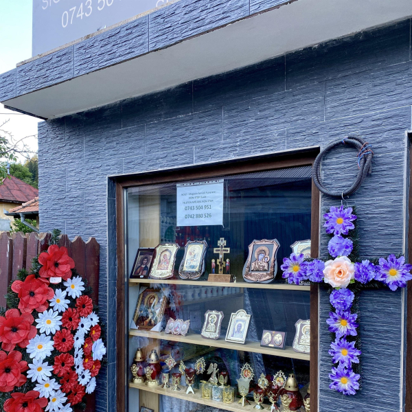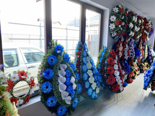 Oferim obiecte si accesorii necesare unei inmormantari - coroane, jerbe, coronite, aranjamente florale, felinare, prosoape, batiste, set de farfurii si cani, esarfe, baticuri, doliu, lumanari, candele, iconite, fitil, tamaie, carbuni etc.