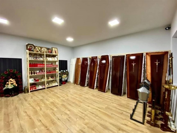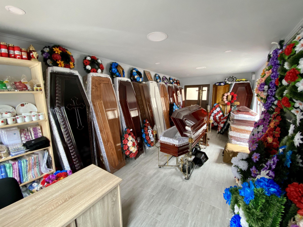 Va punem la dispozitie o gama larga de sicrie complet echipate (toate marimile si modelele), coroane si aranjamente florale la preturi accesibile. Avem disponible peste 30 de modele variate de coroane, jerbe funerare si coronite: clasice, rotunde, lacrimi, inimi, cruci de flori, cosuri si buchete.